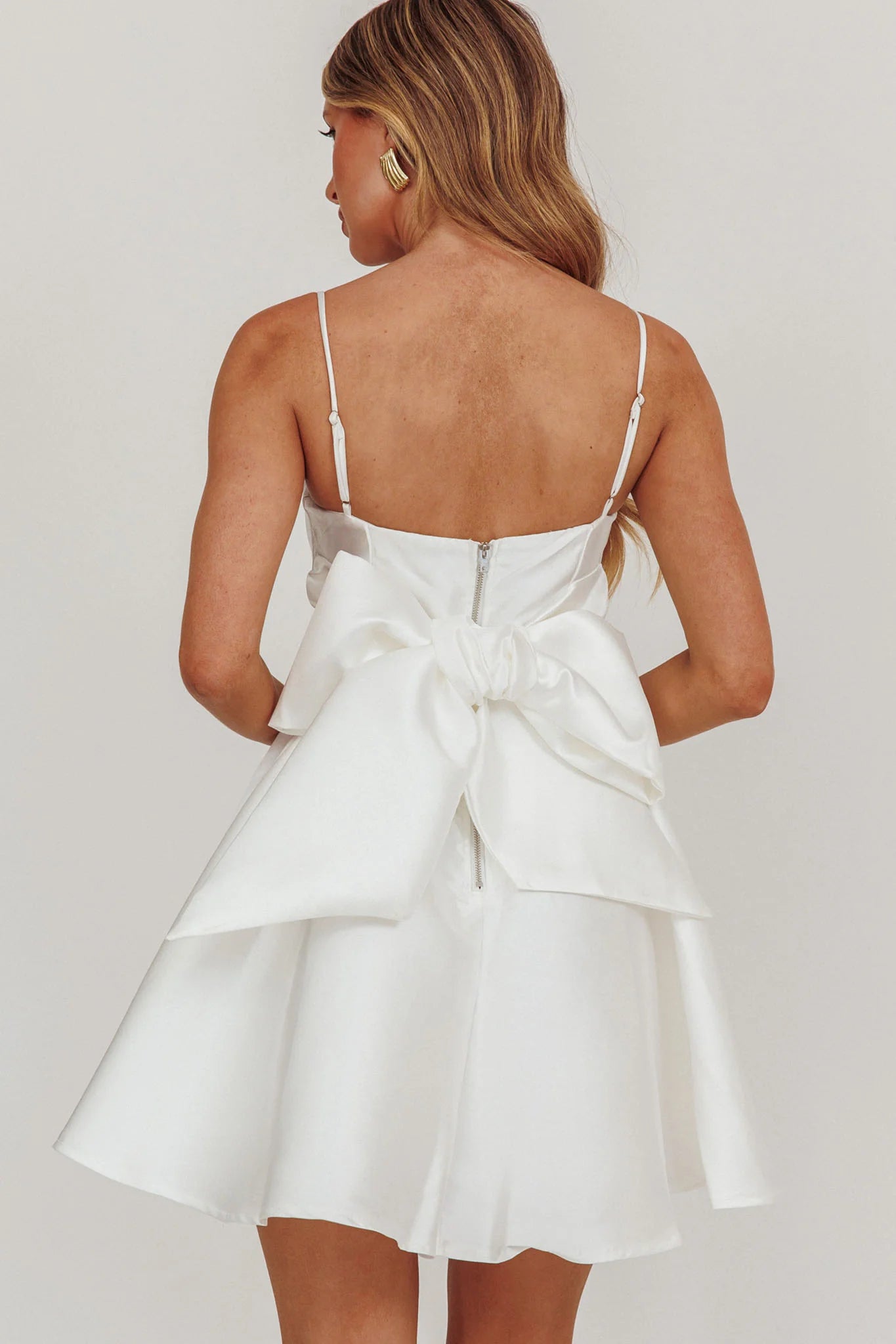 another style within 30 days of receiving your order.Striking and elegant, our gorgeous Athens mini dress is the epitome of contemporary chic. Featuring a playful oversized bow and a flared silhouette, it's sure to make you feel like a princess. Effortlessly elevate this dress by pairing it with your favourite heels and jewellery.