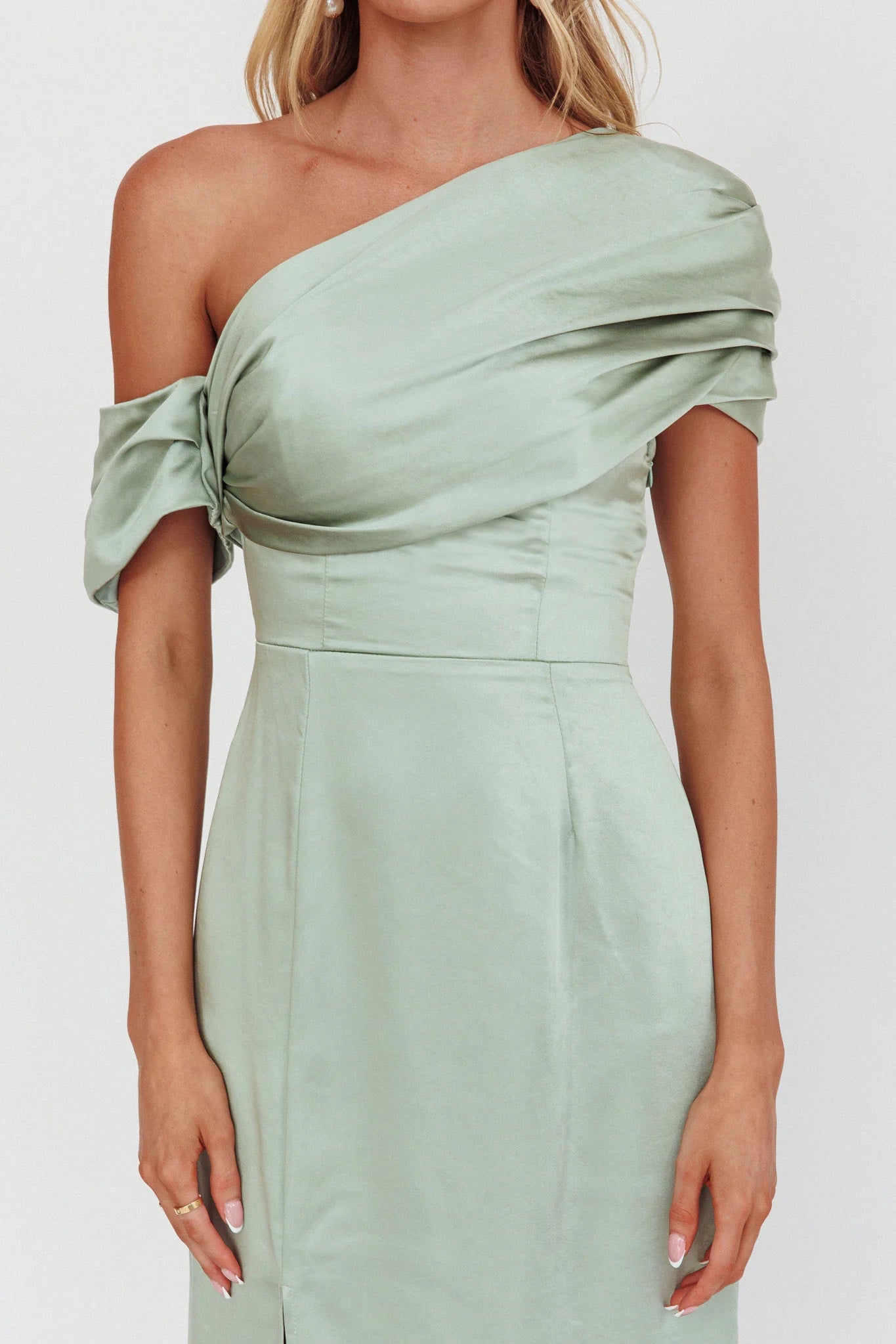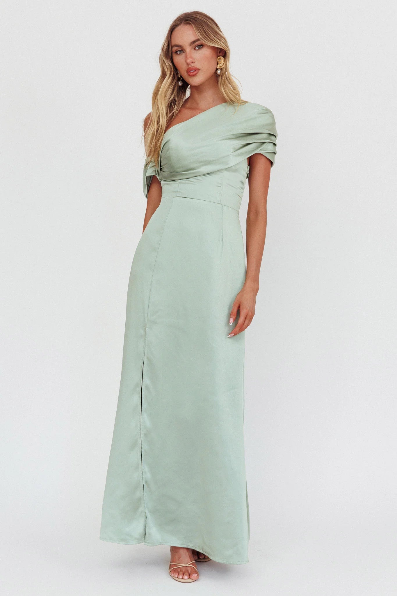 another style within 30 days of receiving your order.Make an entrance in our gorgeous Bellissima maxi dress. We are in love with its unique, asymmetric shoulder design and pretty pleat detail. It's the perfect bridesmaid dress or wear it to your special birthday soiree! Team it with strappy, nude heels and a clutch for a head-turning look.