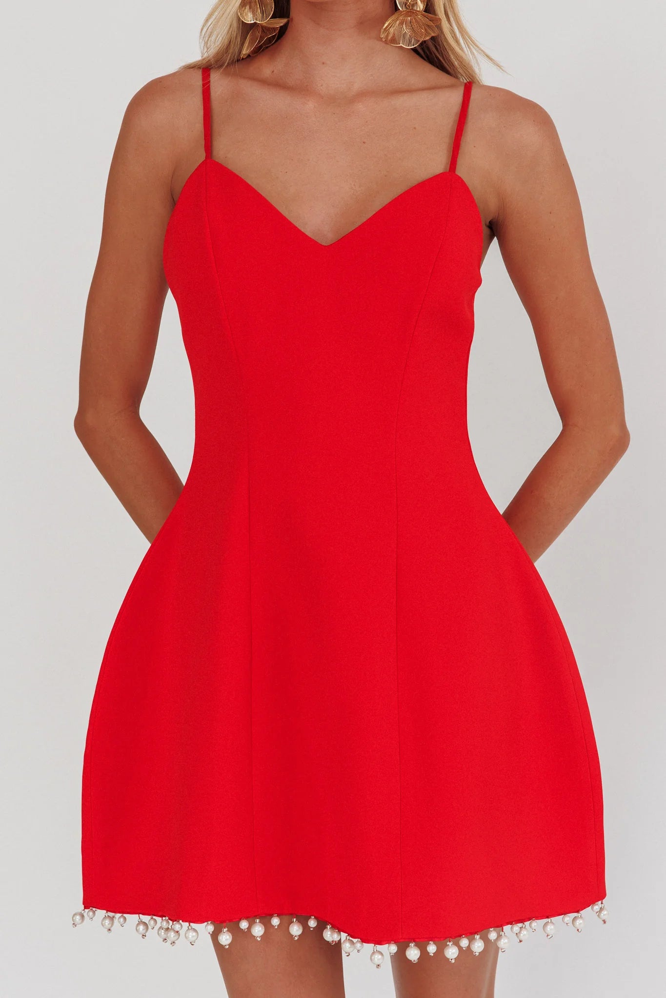 another style within 30 days of receiving your order.Make an entrance in our gorgeous Besos mini dress. We love its feminine pearl-trimmed hem and unique egg-shaped skirt, perfect for twirling the night away! Team it with kitten heels and a clutch for an It Girl look we are loving.