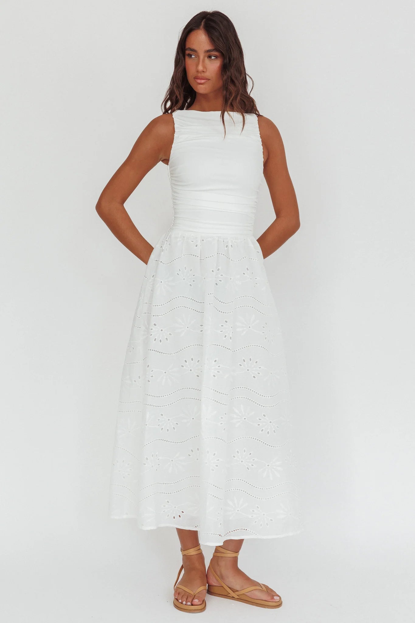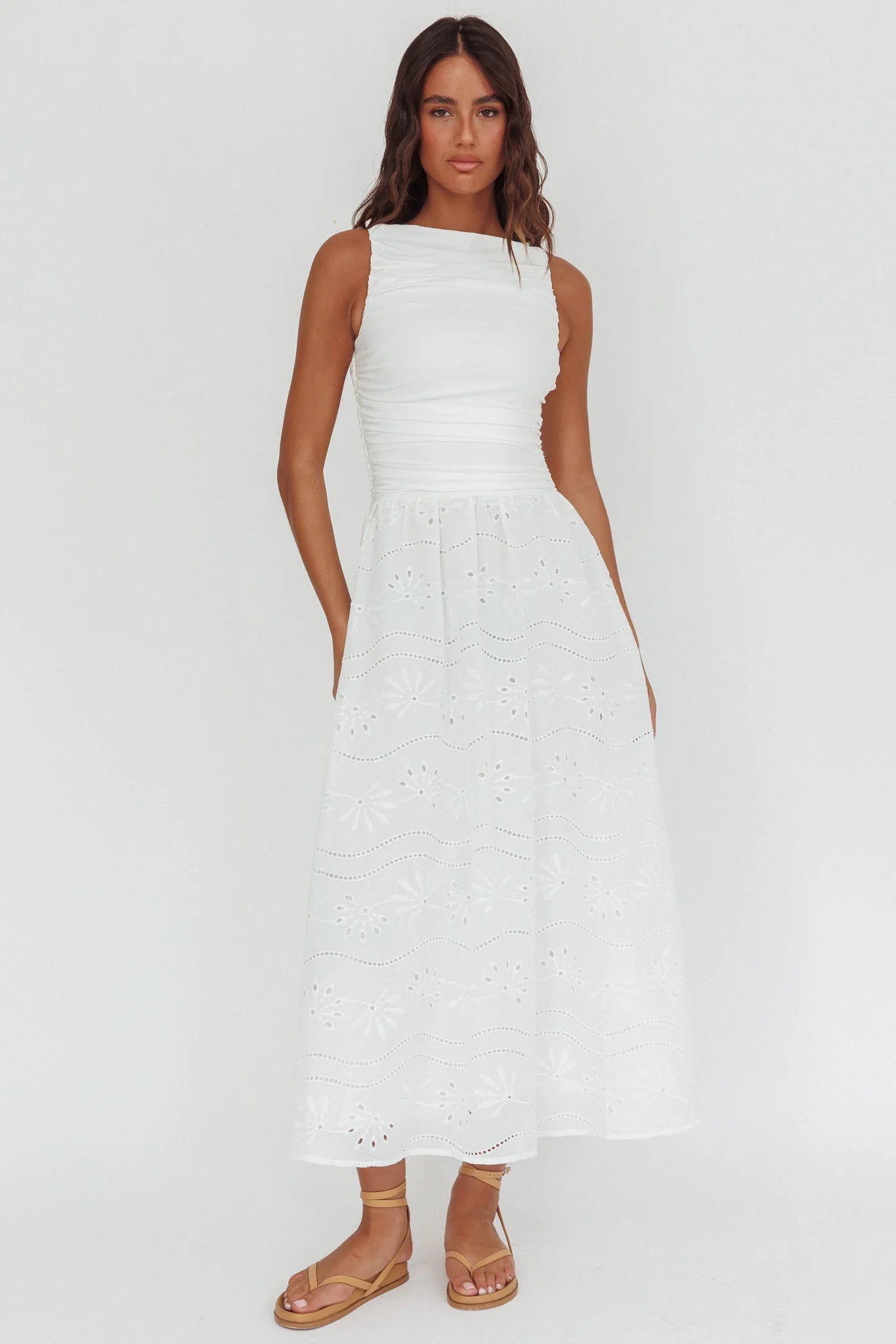 another style within 30 days of receiving your order.Strut through your weekend in our gorgeous Dalayla maxi dress. We are in love with its eyelet detail in the skirt and ruched bodice. Perfect for a flirty date night teamed with kitten heels and a tote for an It Girl look.