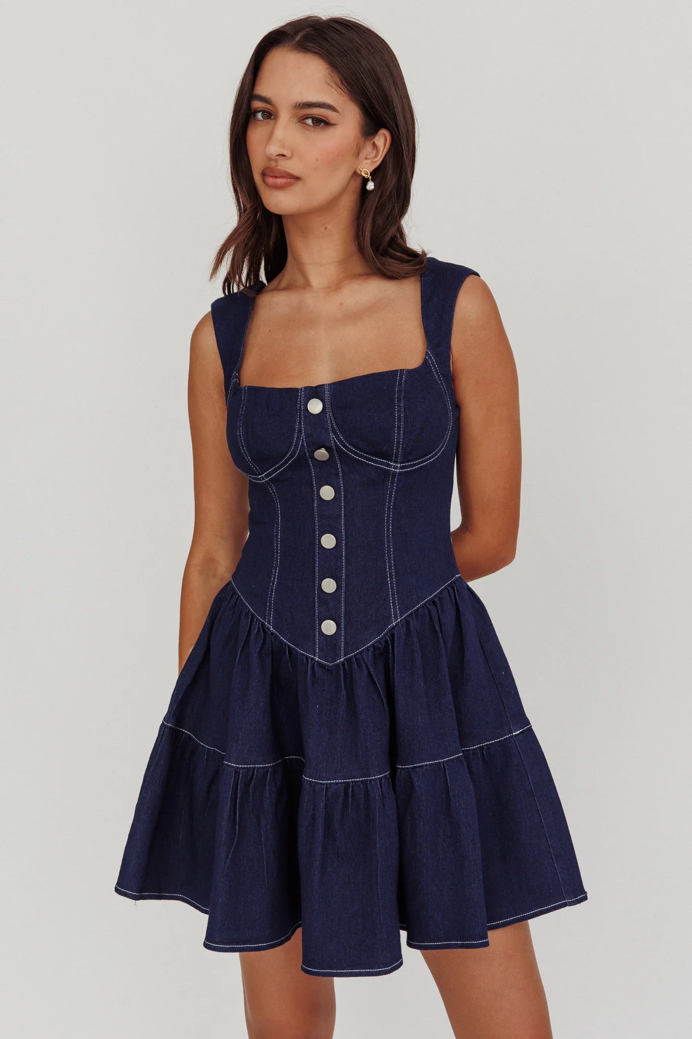another style within 30 days of receiving your order.Be bold in our Deep Dive mini dress! This dress is the epitome of contemporary chic! It features a square neckline and an adorable, flared gathered skirt. Take your look to the next level by accessorizing with your favorite jewelry!