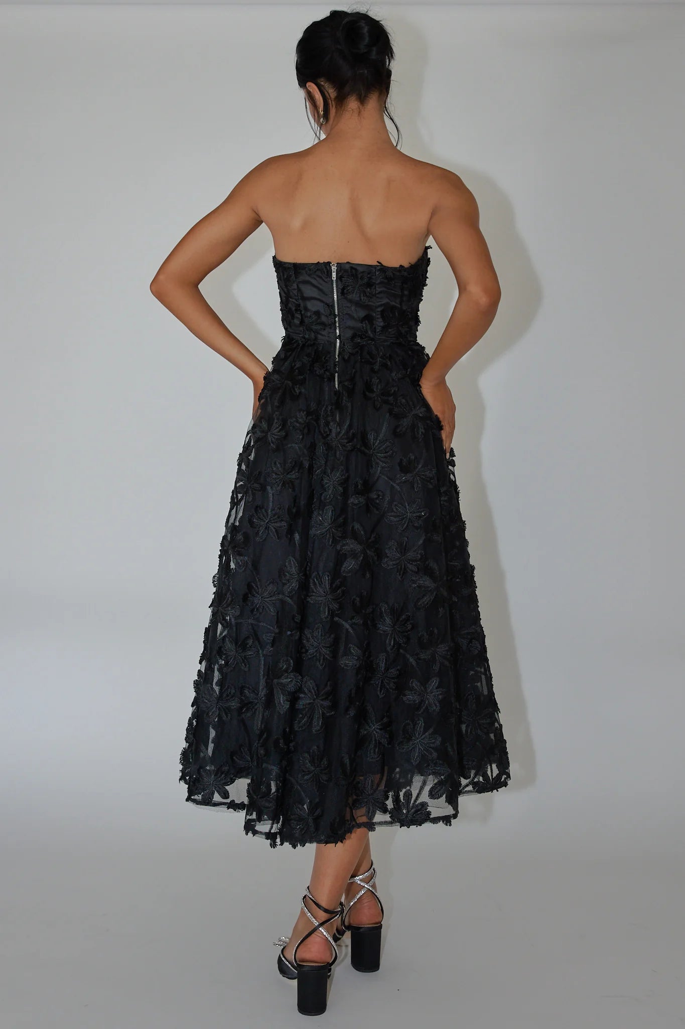 Dori Floral Embellished Midi Dress Black