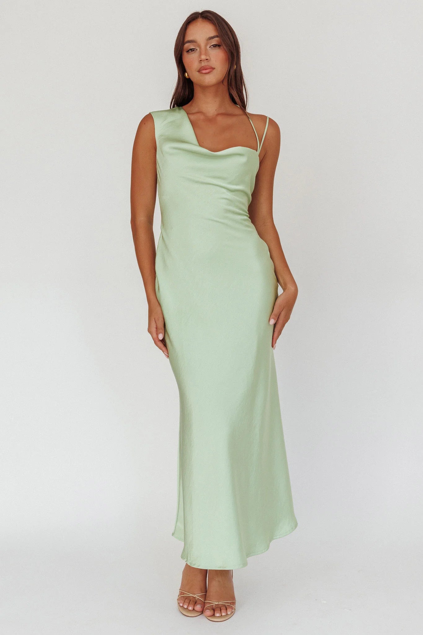 Eros Asymmetric Cowl Neck Maxi Dress Leaf