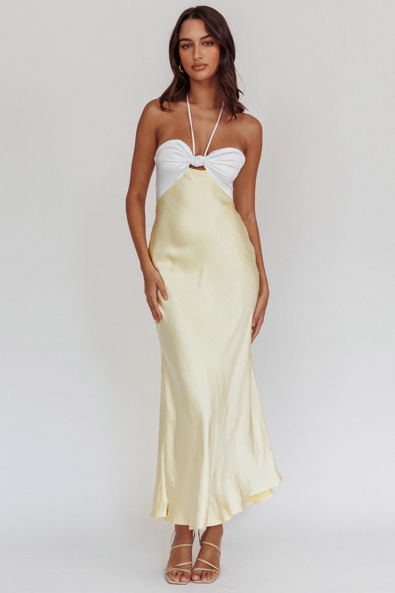 another style within 30 days of receiving your order.You will feel like a goddess in our stunning Harper midi dress. It features a knotted bust and halter design and is perfect for a wedding or a special occasion celebration! Team it with nude heels and a satin clutch for a look that will leave them speechless.