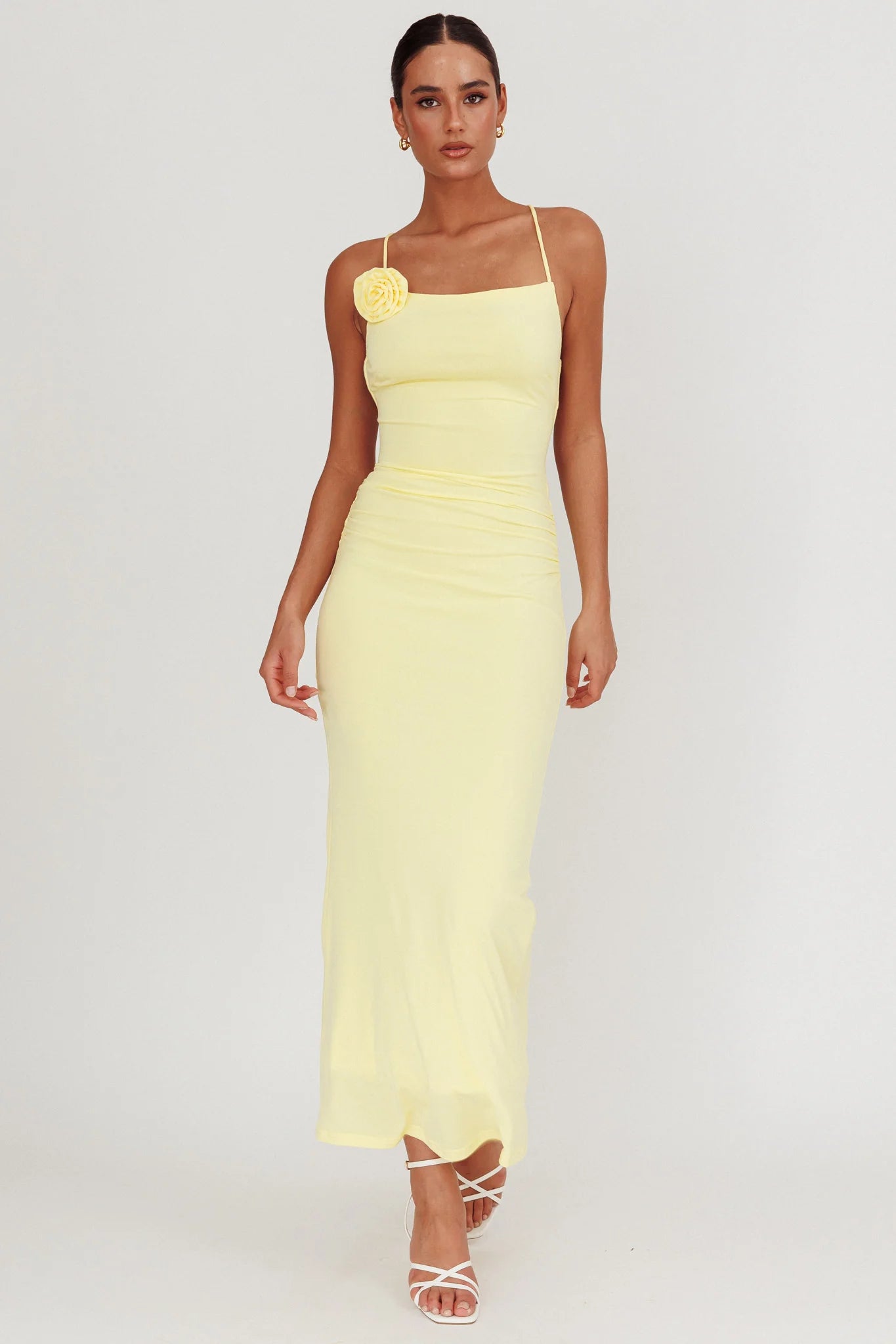 Home Ignite Rosette Backless Maxi Dress Lemon