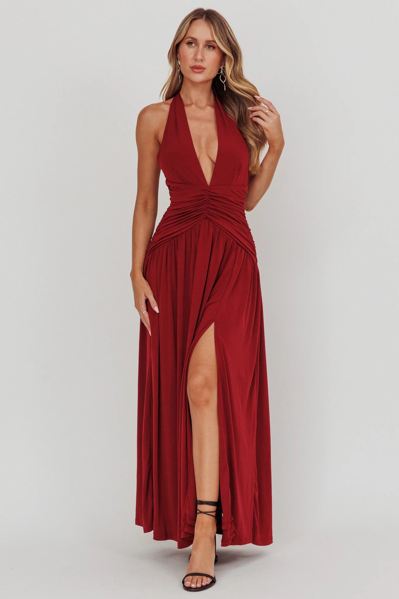 Italia Azure Gathered Waist Maxi Dress Wine
