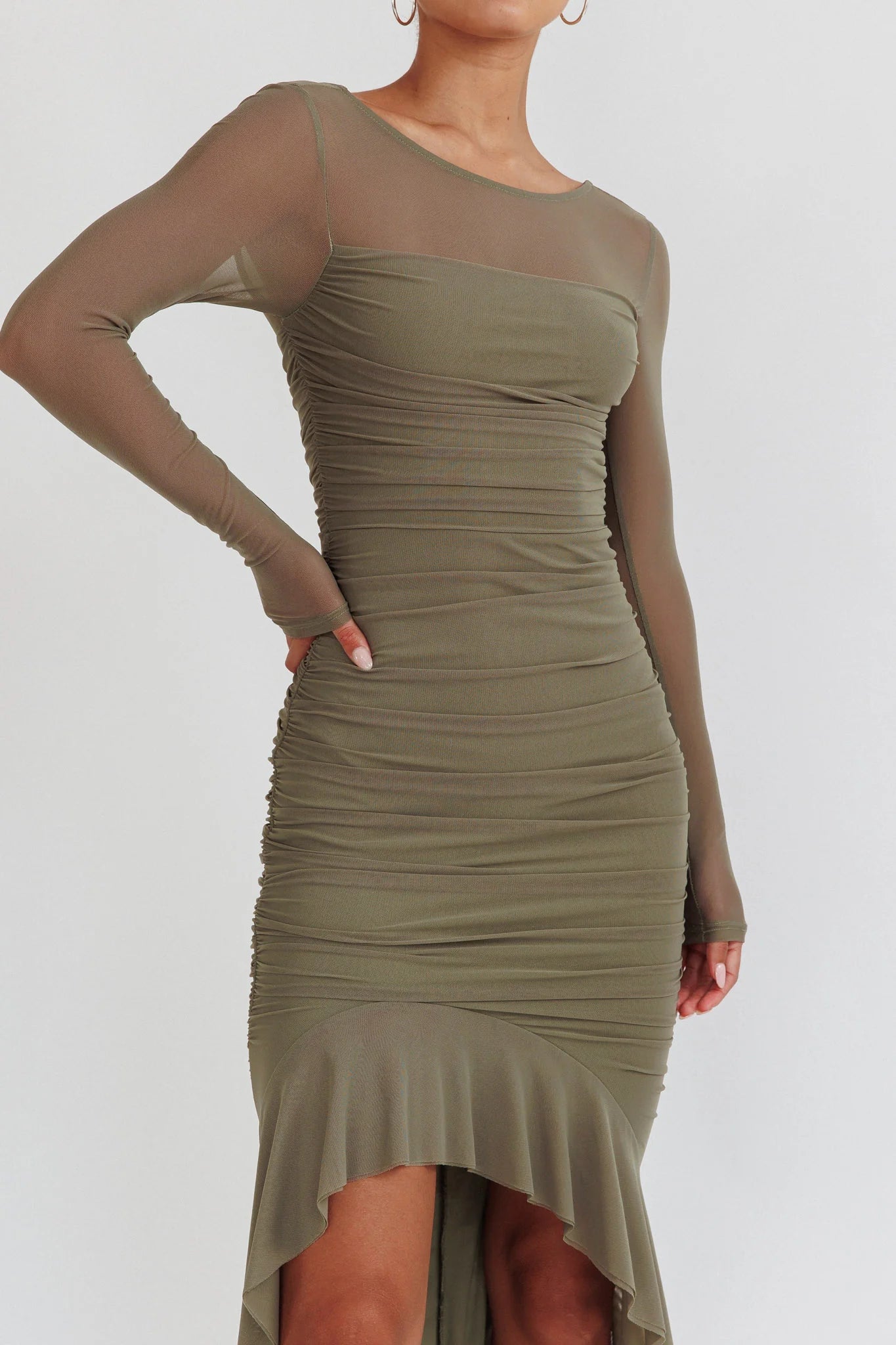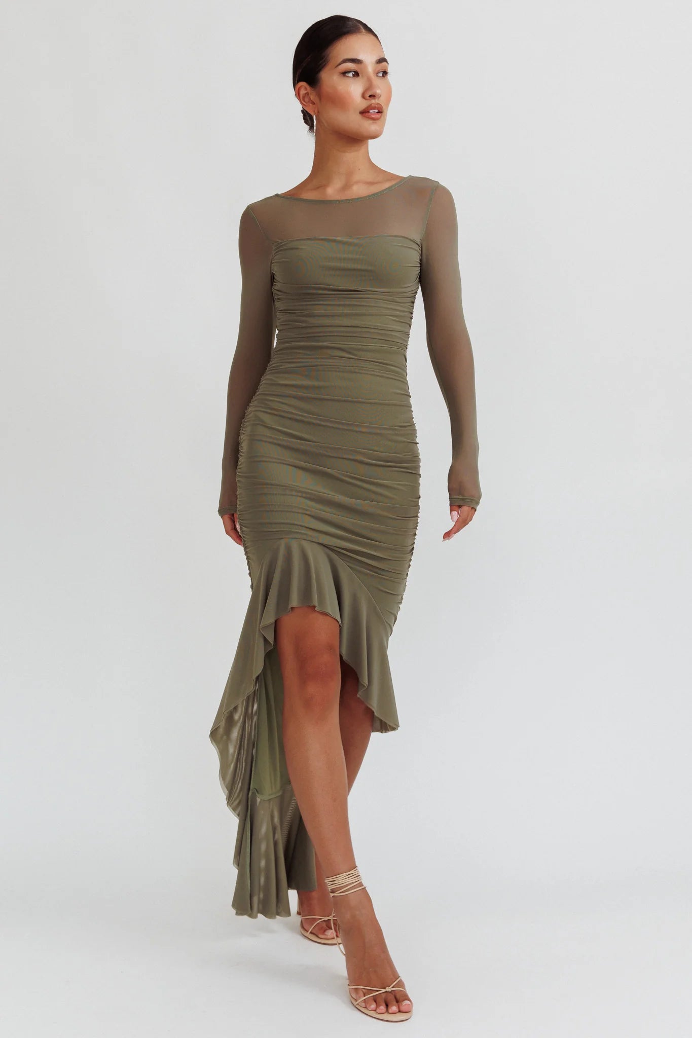 another style within 30 days of receiving your order.Make jaws drop in our gorgeous Jozelle dress. Featuring a ruffle-trimmed, high-low hem and ruching throughout. Perfect for a wedding or a special occasion. Team it with kitten heels and a clutch for an unforgettable look.