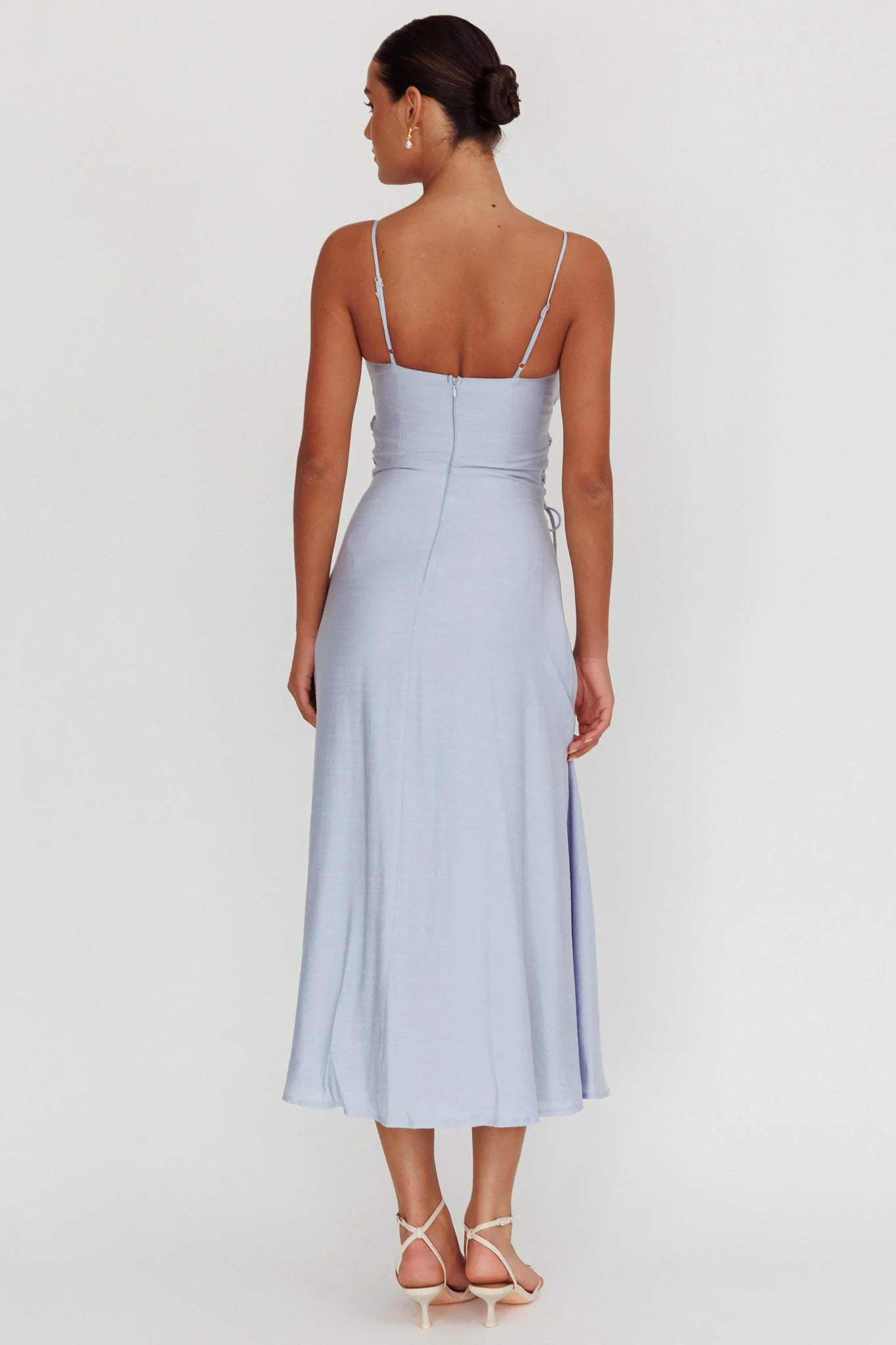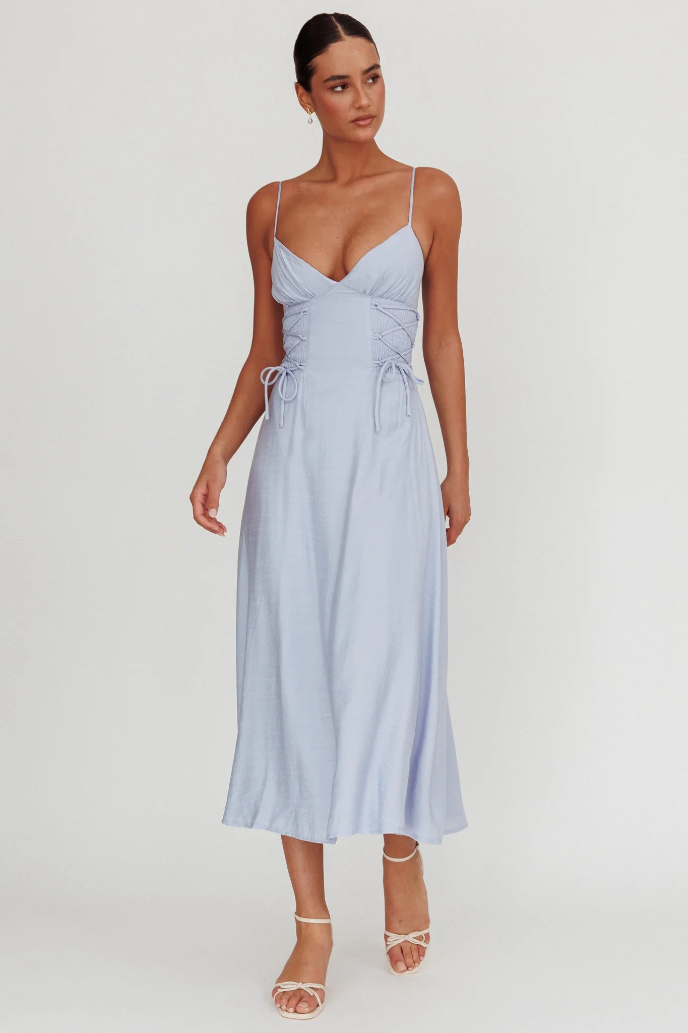 another style within 30 days of receiving your order.Steal the spotlight in our stunning Kalaya midi dress. It features shirring detail in the waist and lace-up sides and is perfect for a special birthday celebration or date night with your crush. Team it with strappy, nude heels and a tote for a head-turning look.