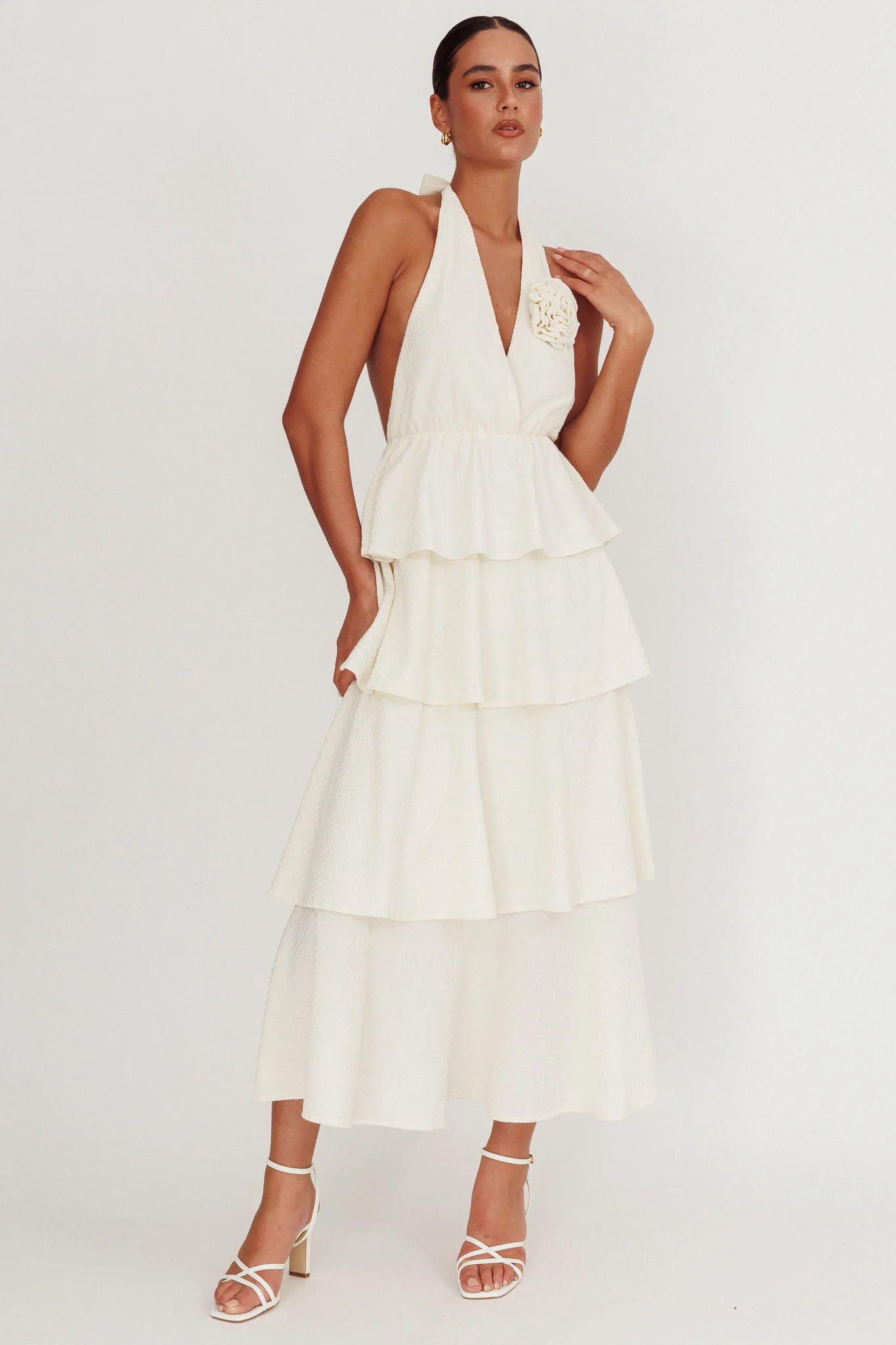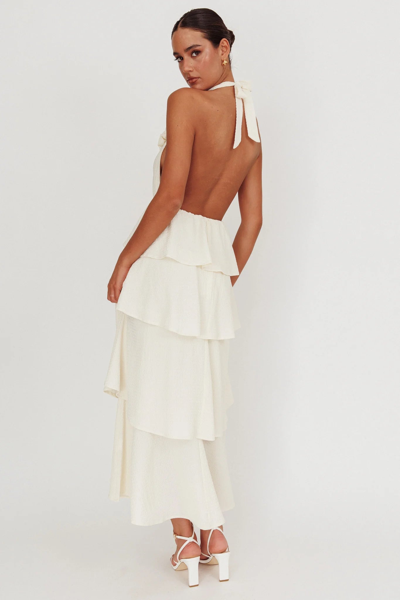 another style within 30 days of receiving your order.You'll feel like packing your bags and jet-setting to an island paradise in our Kimberley maxi dress. We are in love with its chic tiered ruffles and sexy backless design. Team it with heels and your favorite jewelry for a look that will turn heads.