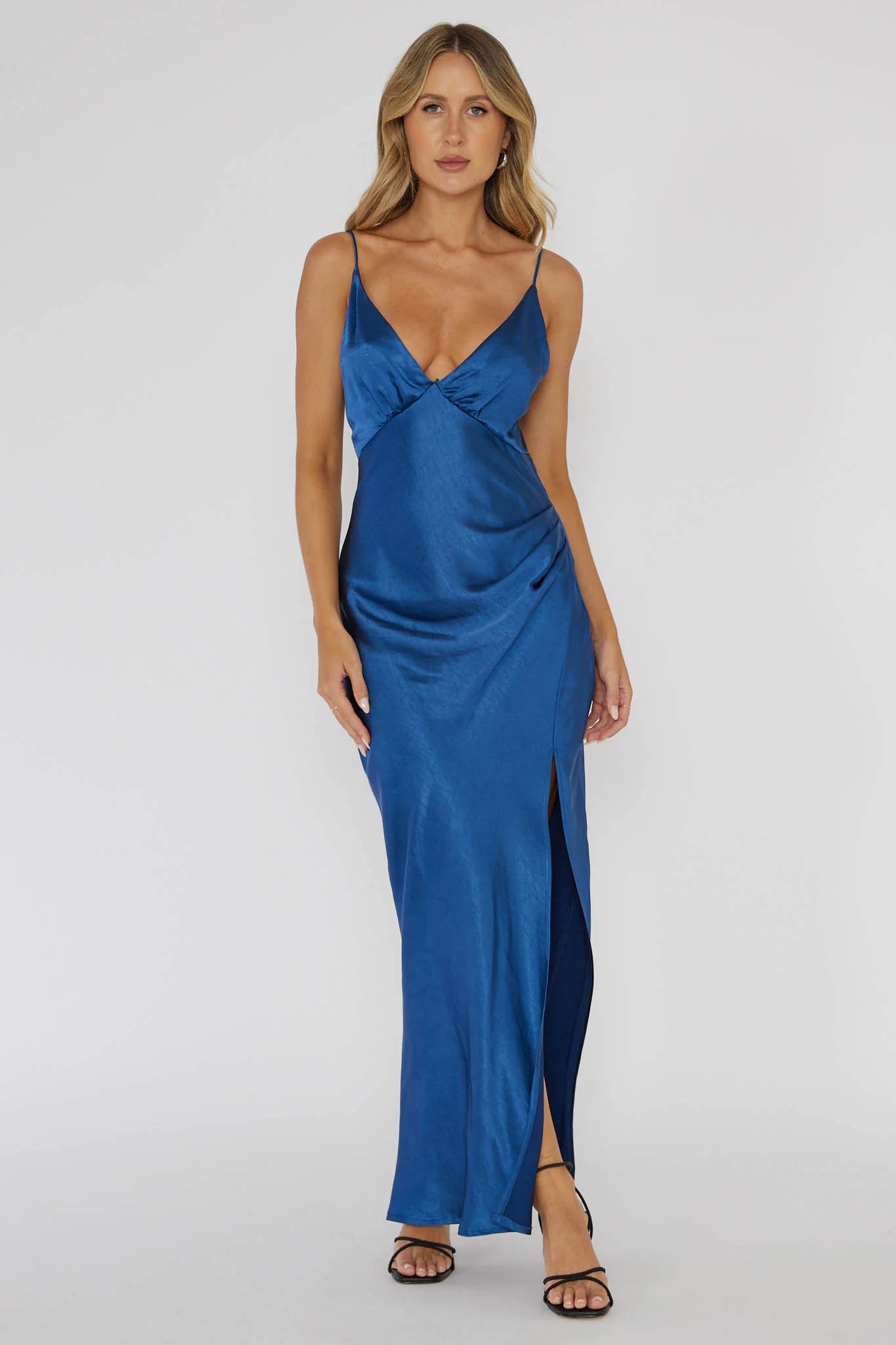another style within 30 days of receiving your order.Make an entrance in our gorgeous Marlie maxi dress. It features a front, thigh split, and stunning satin fabric. It's perfect for a wedding or special occasion teamed with silver heels and a satin clutch for a look that will have you flooded with compliments.