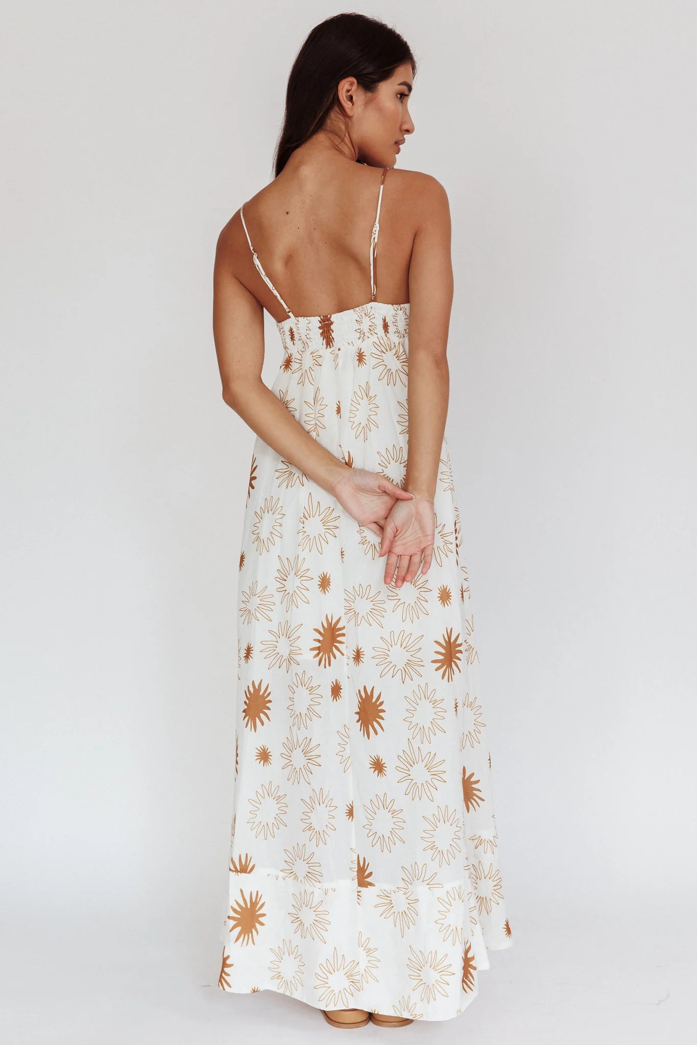 another style within 30 days of receiving your order.Bring a touch of paradise wherever you go with our Midsummer maxi dress! It features a graphic sun print that is inspired by the vibrant life of summer. It's perfect for casual walks and backyard barbeques. Style it with sandals and a tote bag for an easy breezy look!