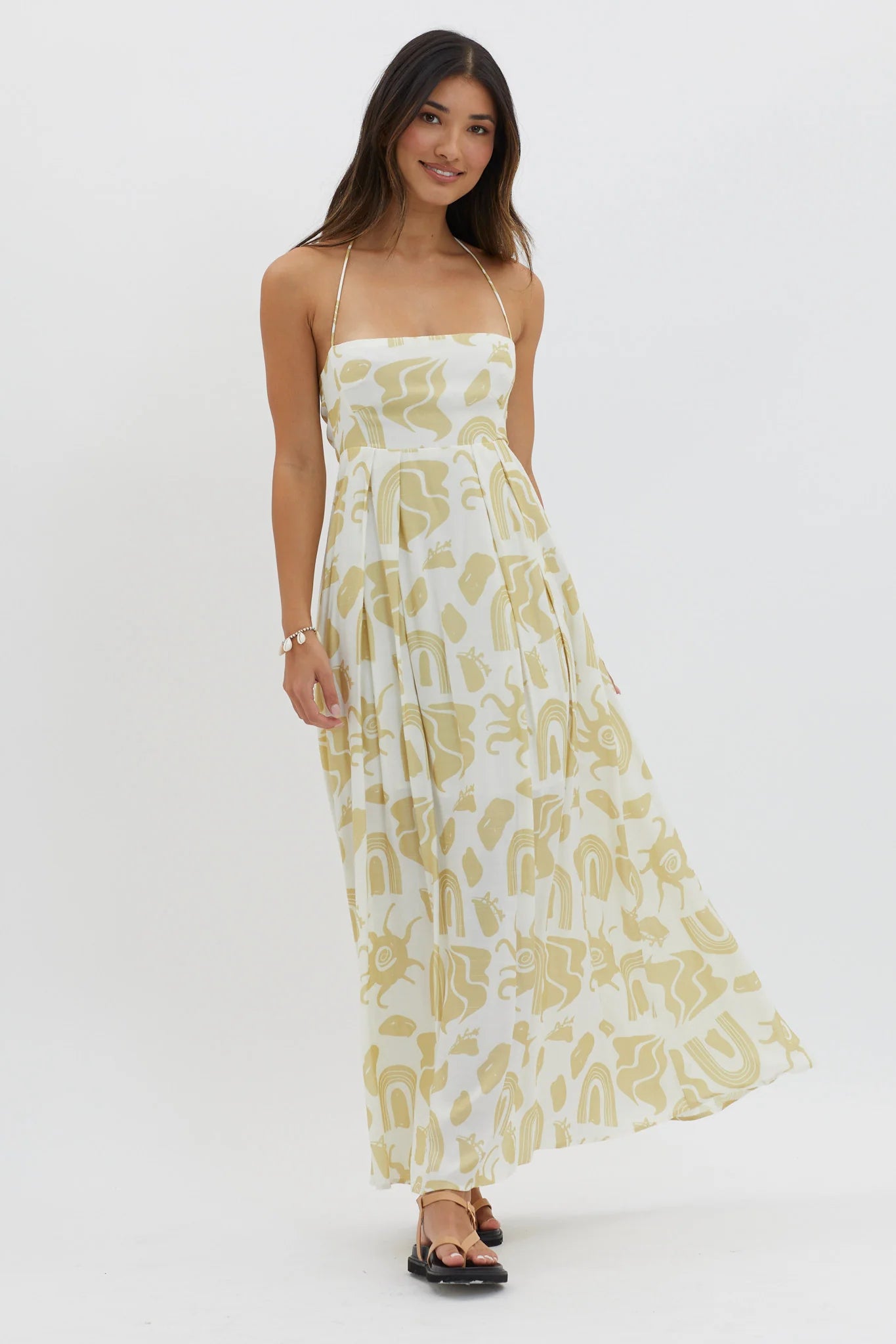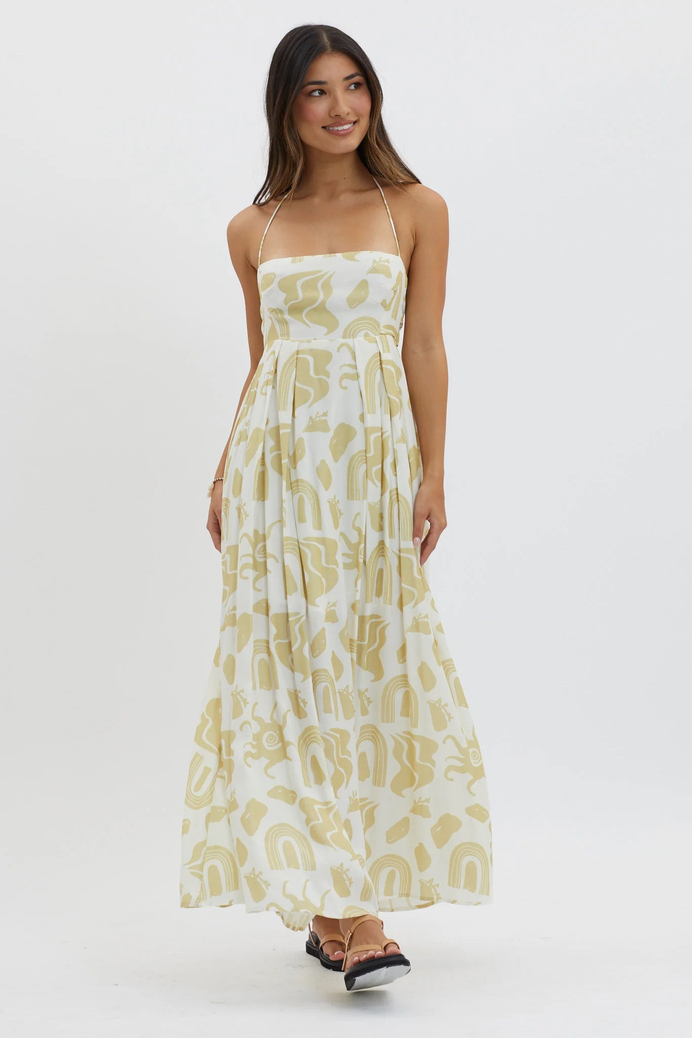 another style within 30 days of receiving your order.Twirl through your weekend in our chic Moreton maxi dress. Featuring a halterneck style and tie in the back, it's perfect for sunset cocktails with your besties or a BBQ pool party. Team it with mules and a tote for a look we are loving.
