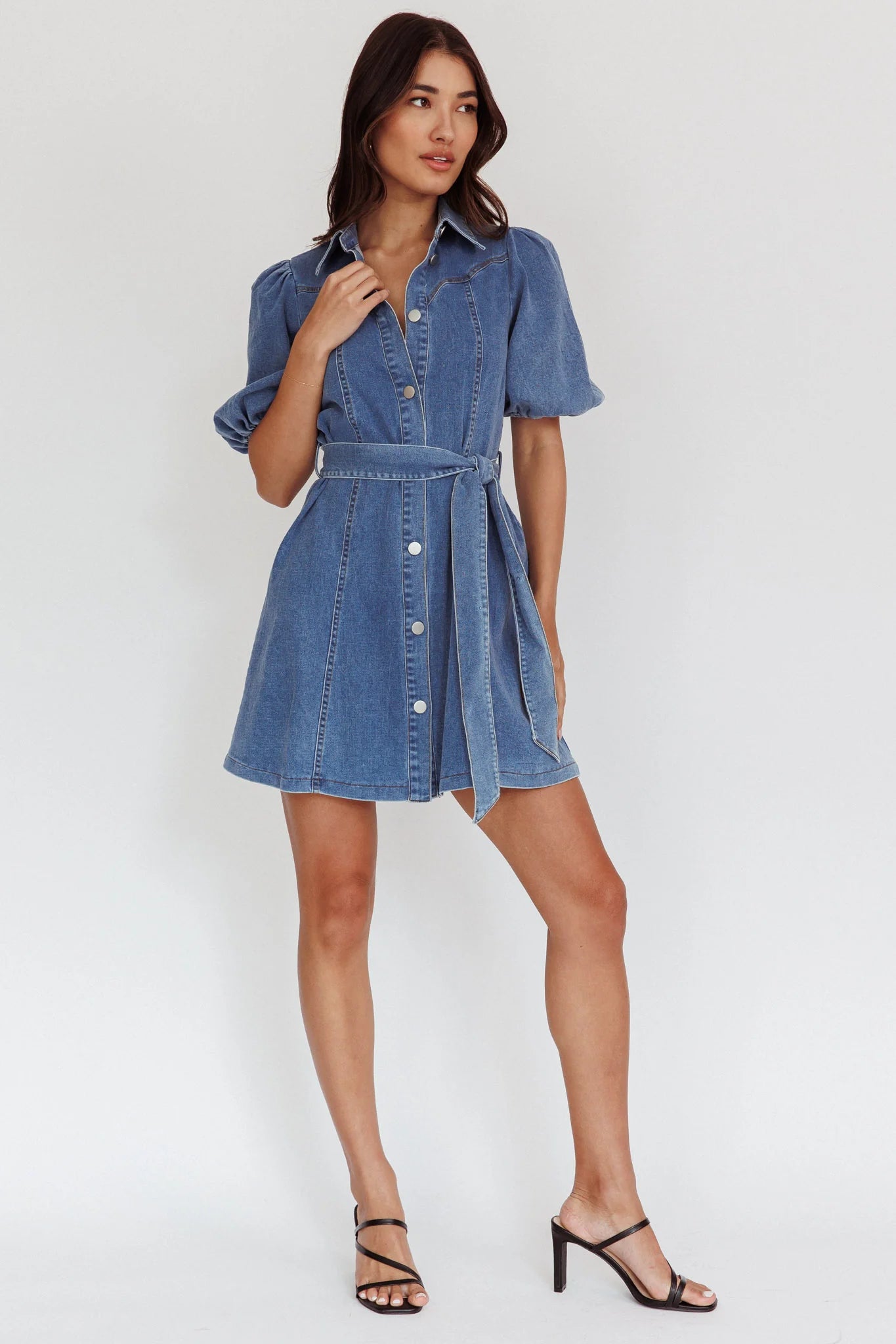 another style within 30 days of receiving your order.You will sweep them off their feet in our super chic Myleigh mini dress. It features button closures in the front and feminine puff sleeves and is begging to be worn to your next brunch date with the girls! Team it with nude mules and a saddle bag to complete the look.