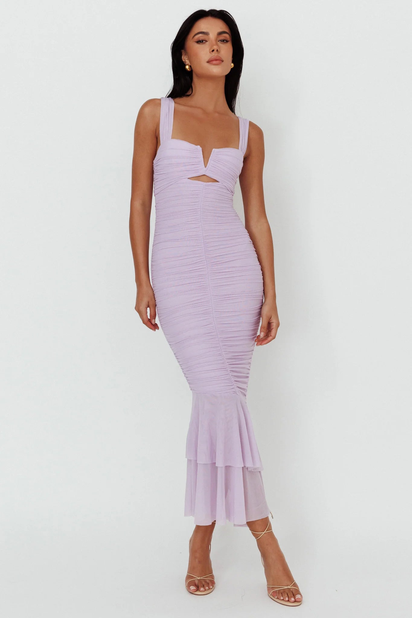 Home Nadia Ruched Fishtail Maxi Dress Lilac
