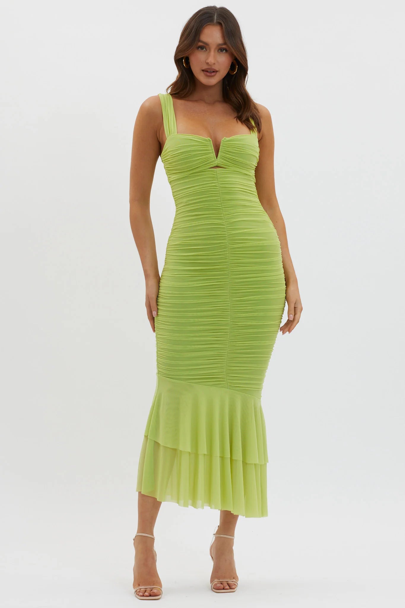 Home Nadia Ruched Fishtail Maxi Dress Lime