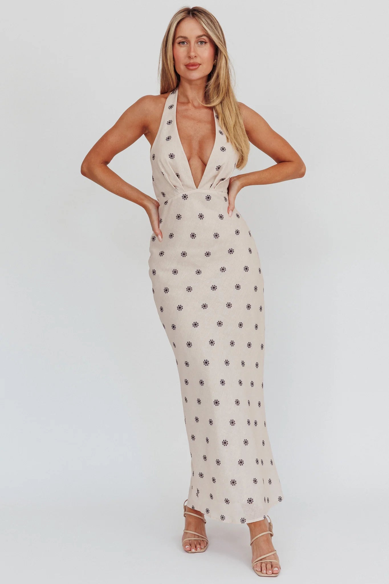 another style within 30 days of receiving your order.Can we take a moment for this dress? Our Of Your Dreams dress is sure to make jaws drop! We are obsessed with its classic halter neck and daring neckline. Perfect for any occasion where you really need to leave a lasting impression!