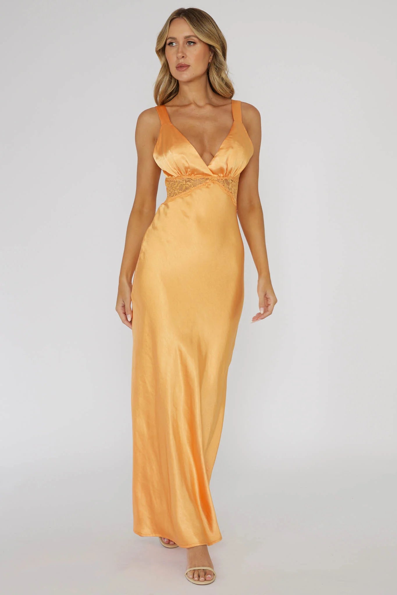 another style within 30 days of receiving your order.Make an entrance in our gorgeous One Heart maxi dress. It features lace inserts in the waist and a lace back. Perfect for a wedding or black tie event! Team it with a satin clutch and strappy heels for a stunning look.