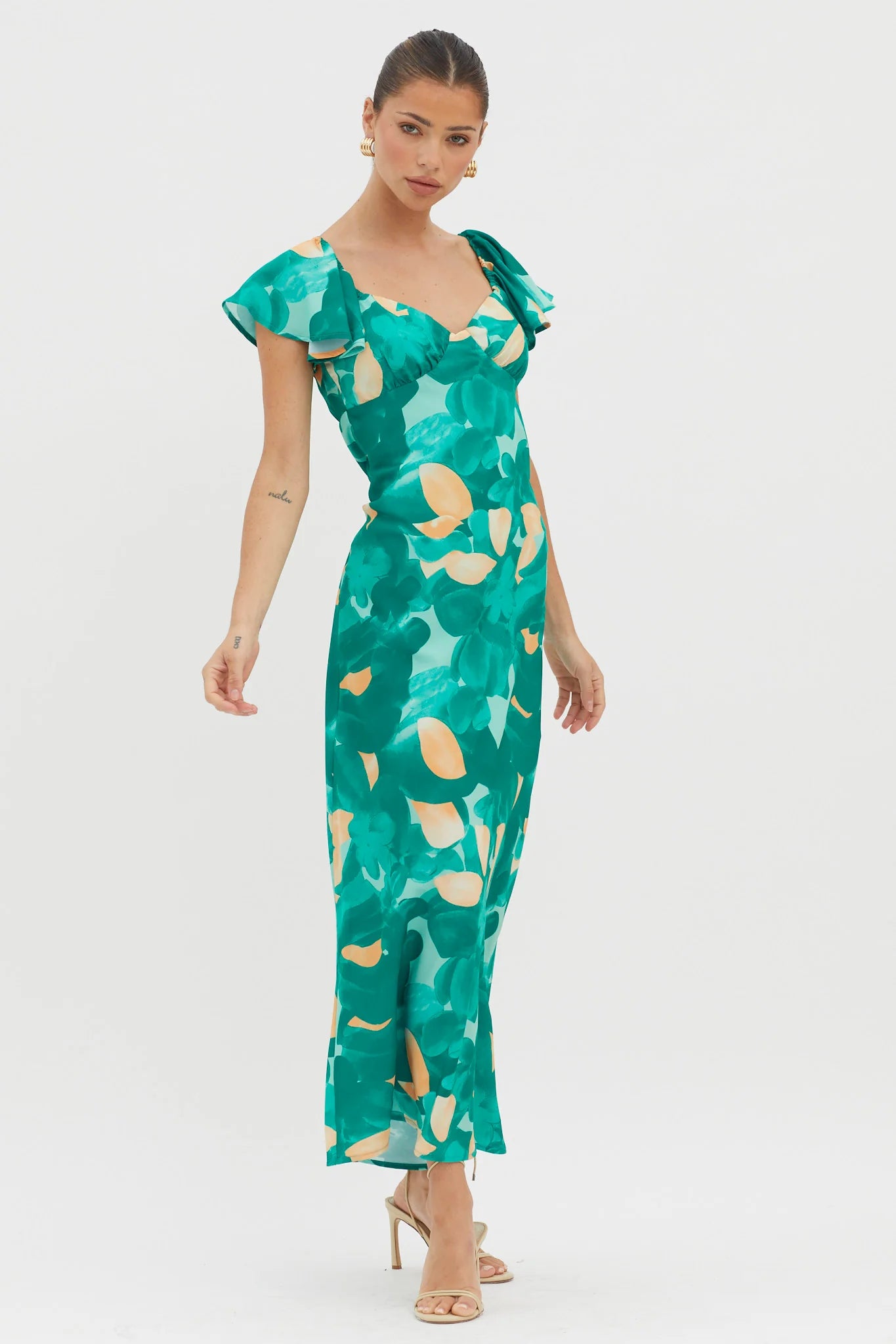 another style within 30 days of receiving your order.Dress to impress in our gorgeous Park Avenue midi dress. Featuring romantic flutter sleeves and a pretty print, it's perfect for a wedding or special event! Team it with kitten heels and a clutch for the ultimate It Girl look.