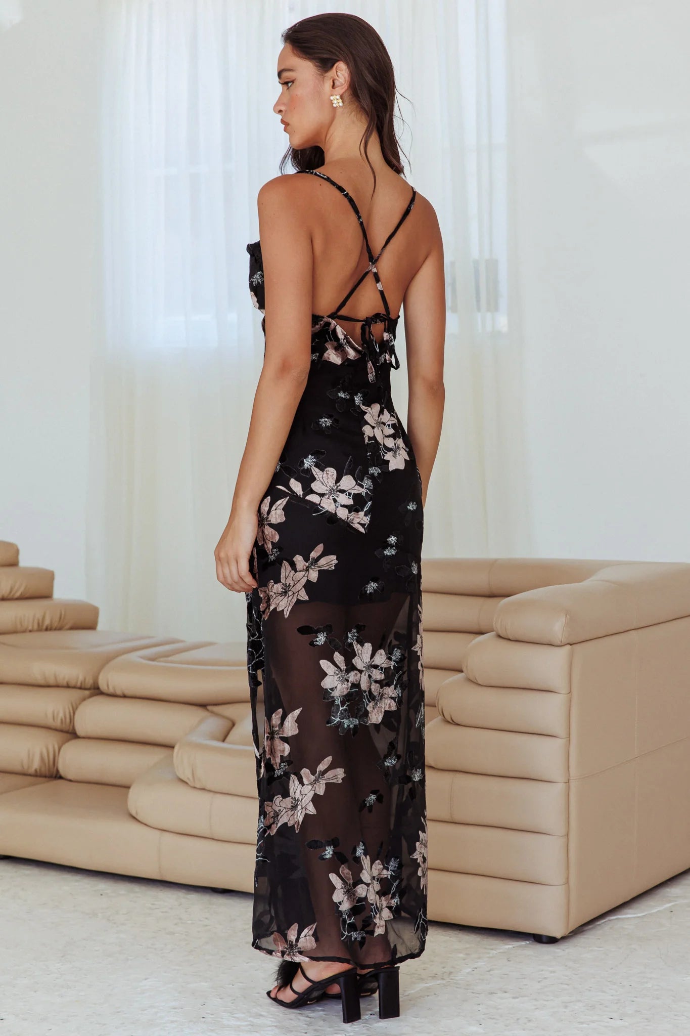 Home Personal Invitation Split Maxi Dress Flowers Black