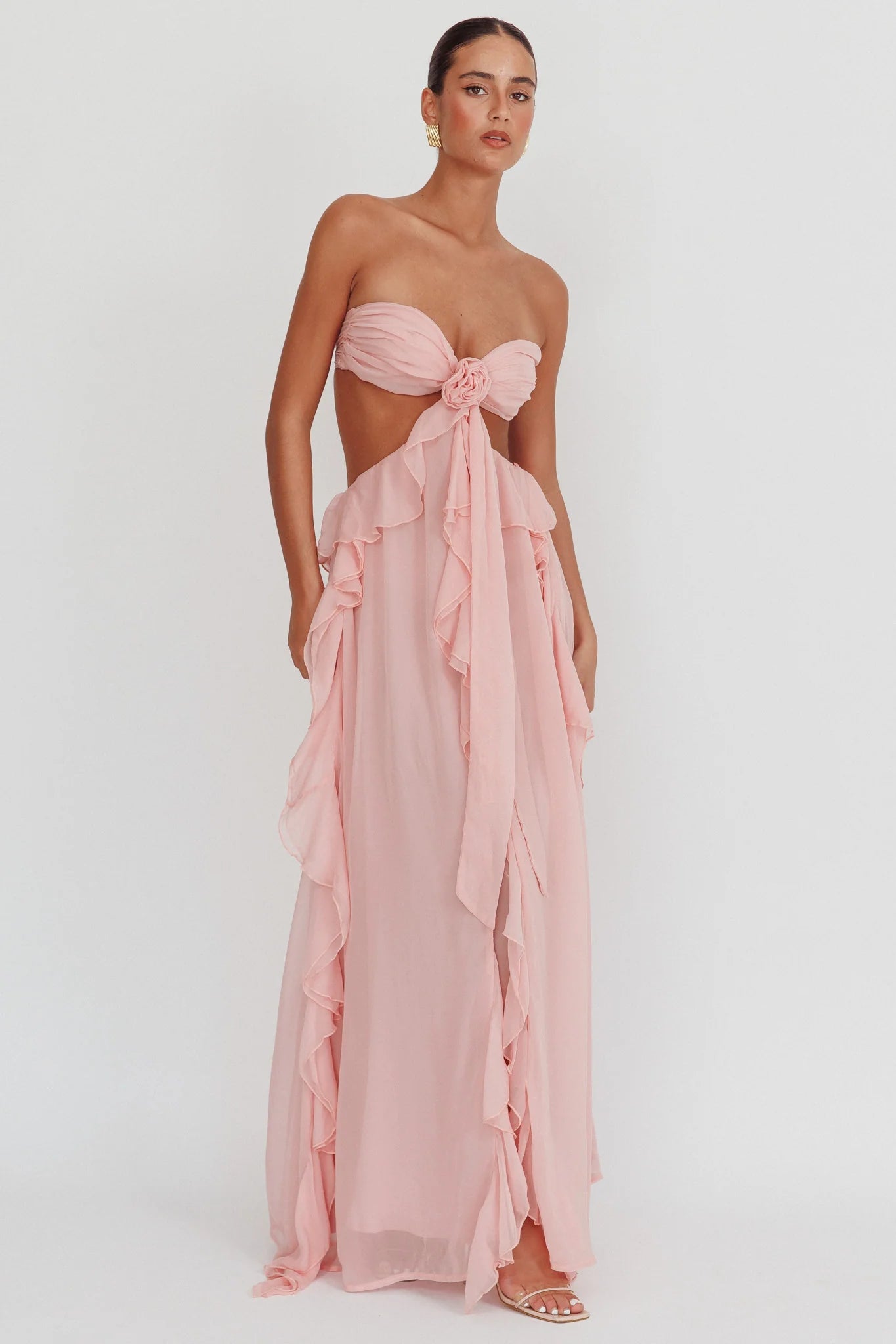 Home Santiago Cut-Out Ruffle Maxi Dress Blush
