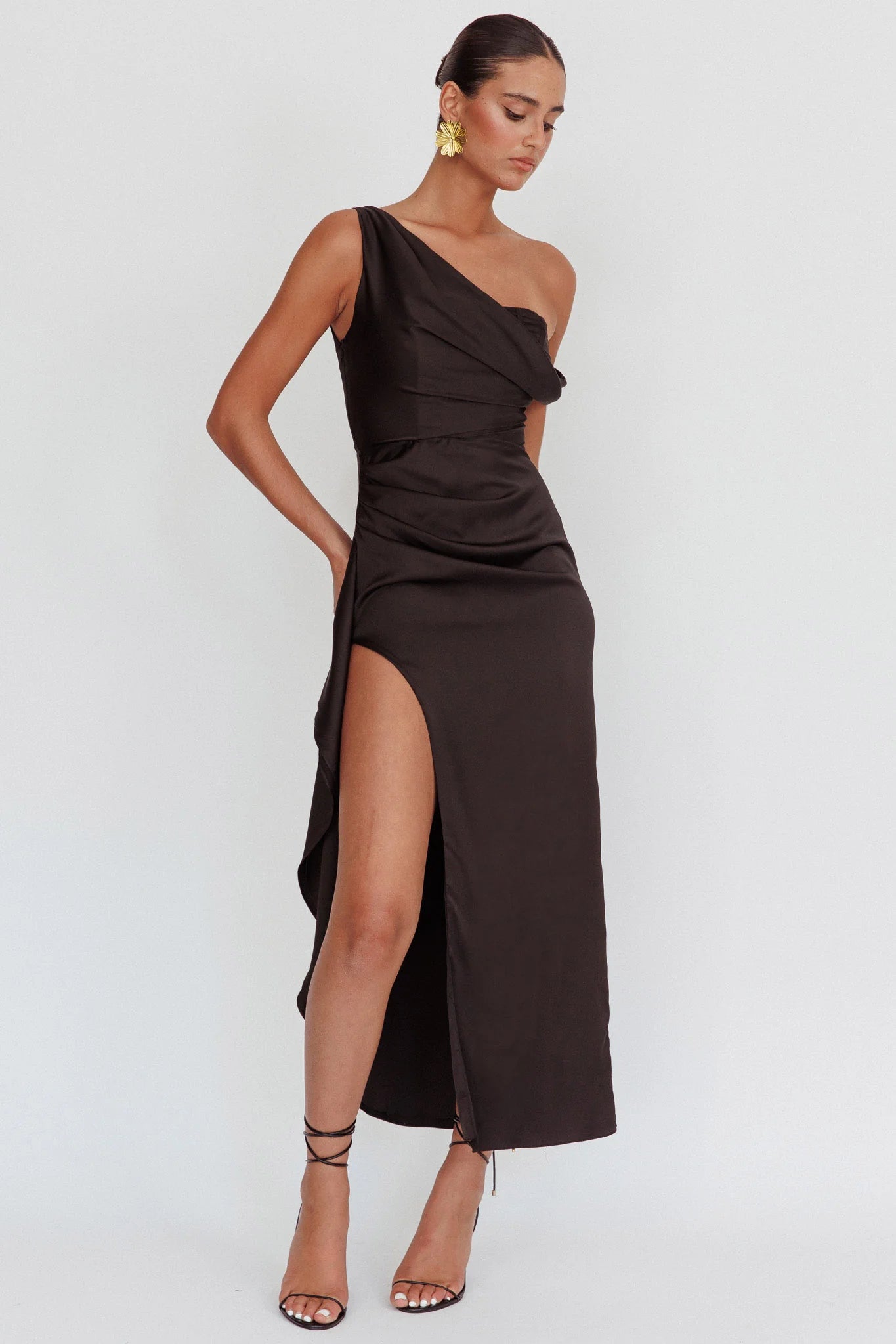 another style within 30 days of receiving your order.Indulge in timeless elegance with our Sensations maxi dress- it's the epitome of glamour and sophistication. This enchanting dress drapes gracefully, accentuating your curves with every movement. Featuring a daring leg slit that elongates your silhouette, this dress promises to make a statement!