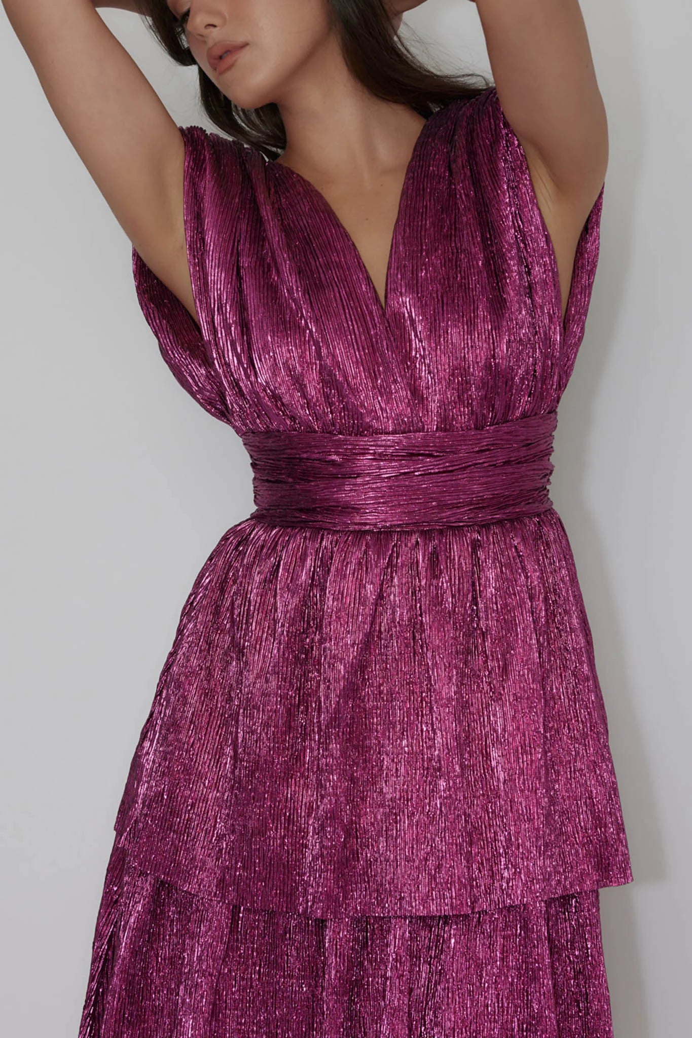 another style within 30 days of receiving your order.Turn heads in our stunning Shimmer maxi dress. Featuring a pretty, textured fabric and a layered hem. Perfect for a wedding or birthday celebration. Team it with strappy, metallic heels and a clutch for an unforgettable look.