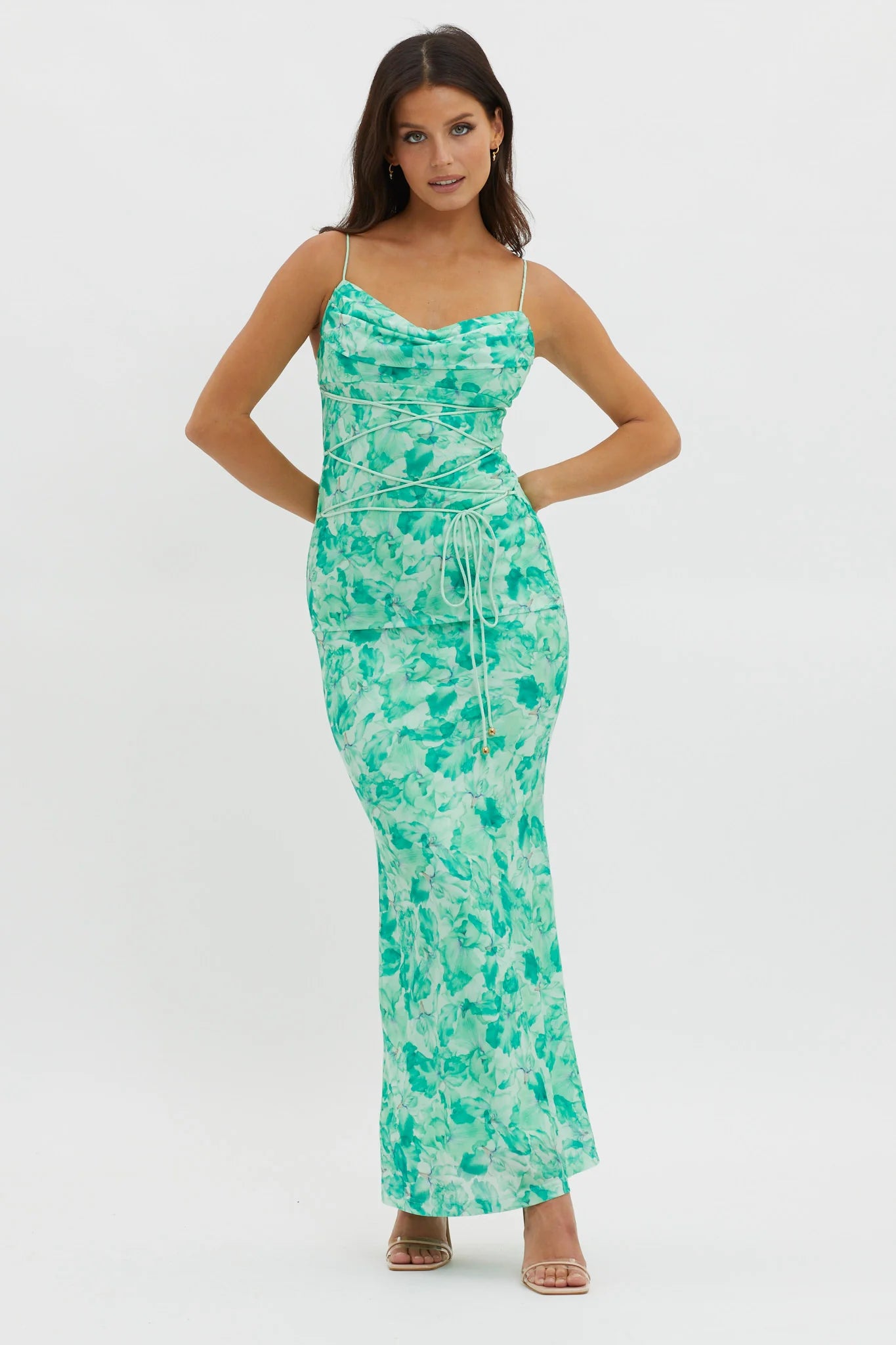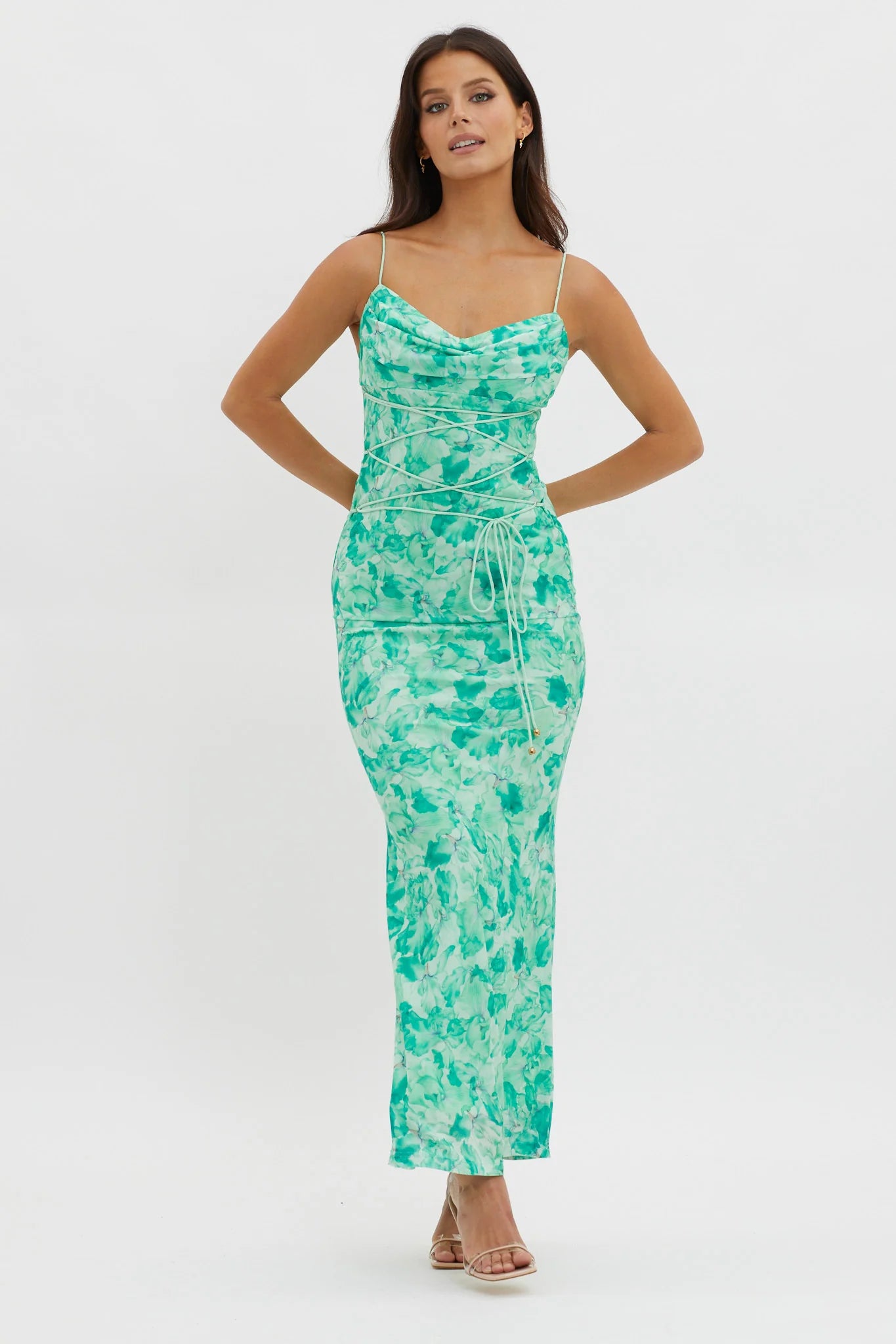 Home Teava Laced Waist Maxi Dress Orchid Green