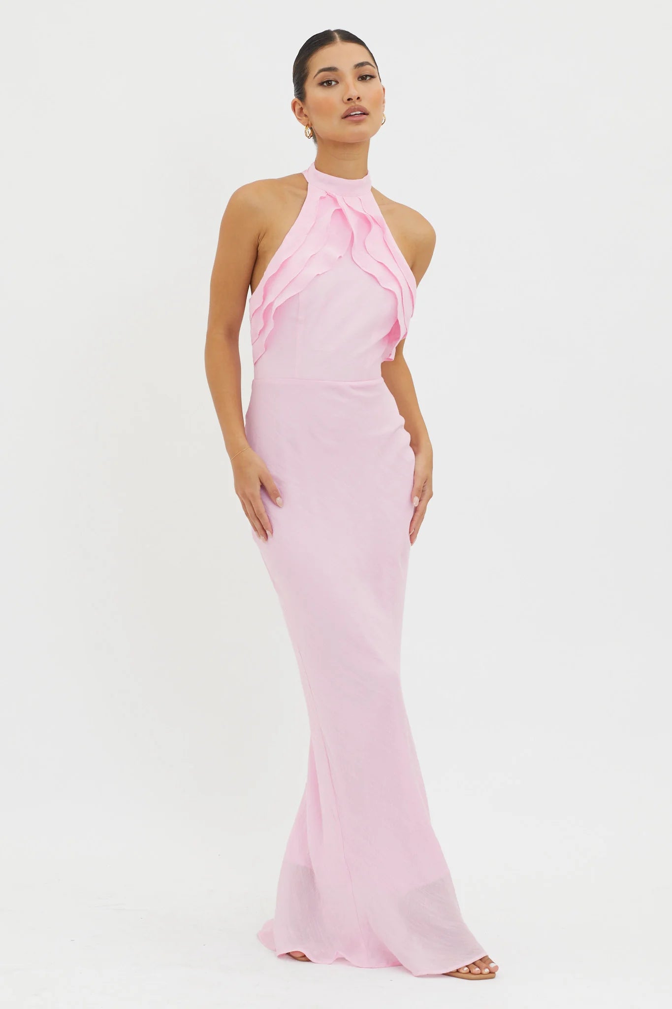 another style within 30 days of receiving your order.Make them stop and stare in our stunning Topaz Skies maxi dress. Featuring a flattering halter neckline and pretty ruffle trim. It's perfect for a glam event or birthday celebration. Team it with nude heels and a clutch for an unforgettable look.