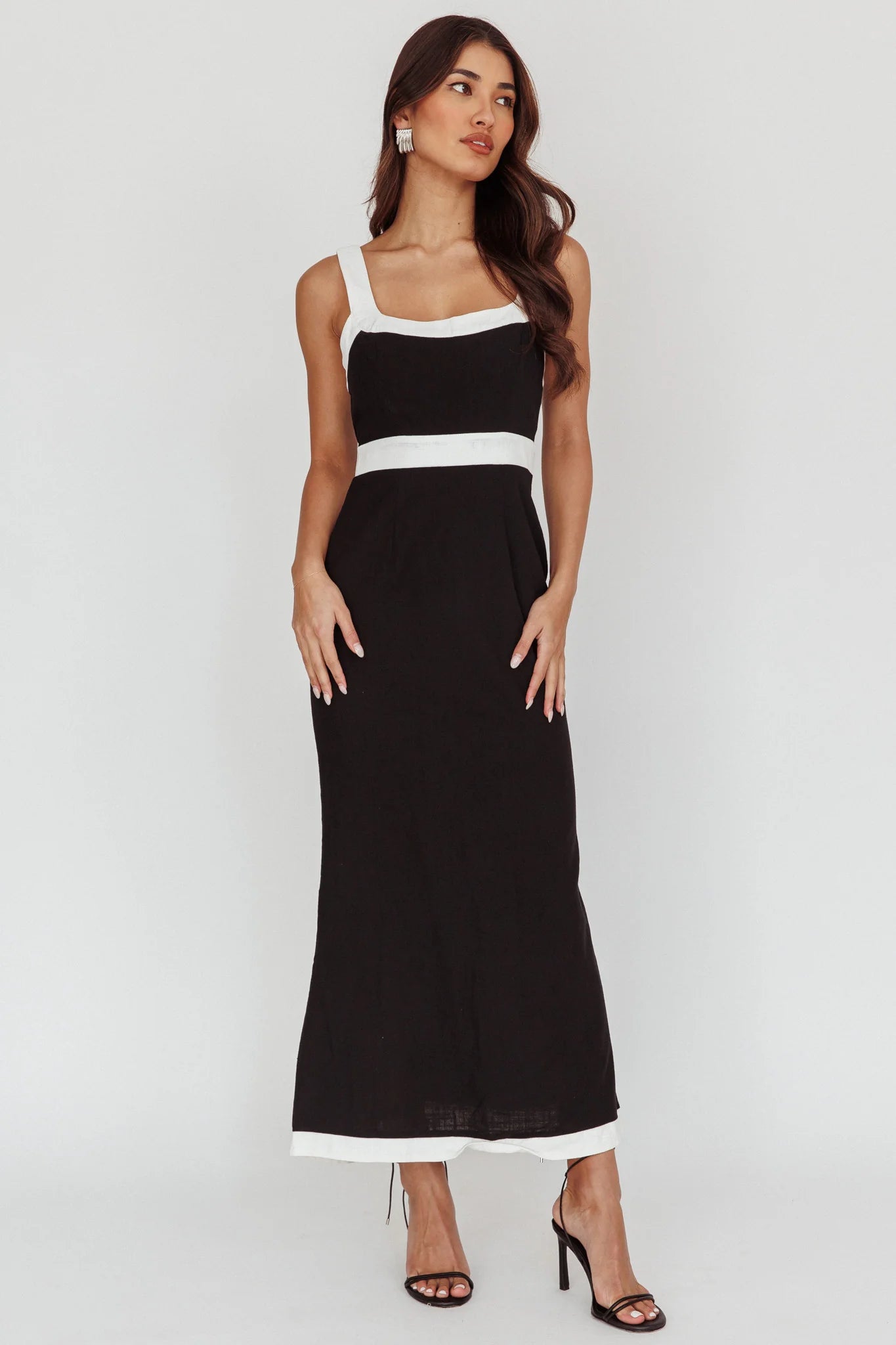 another style within 30 days of receiving your order.Step into sophistication with our Trust maxi dress. This dress features contrasting hem, neckline and waist that add a touch of visual intrigue to its flowing maxi silhouette. Perfect for both casual outings and special occasions, this dress exudes effortless charm and timeless allure. Bring out your individual flair by completing your look with your go-to jewelry!
