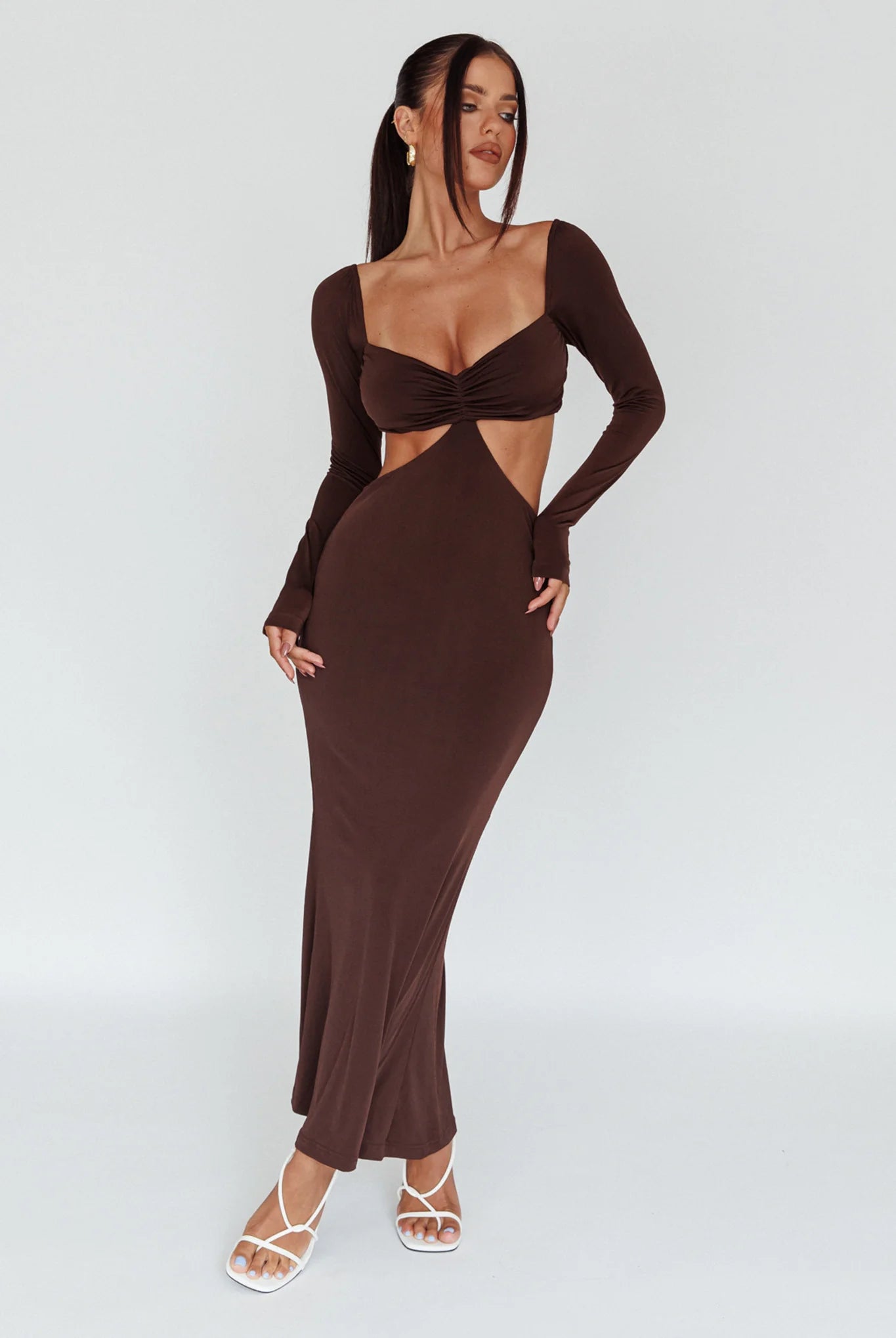 another style within 30 days of receiving your order.Make jaws drop in our super hot Vienna maxi dress. We are in love with the cut-out with and back tie detail. Perfect for a glam girls' night out. Team it with nude, strappy heels and a purse for a look that'll steal the show.